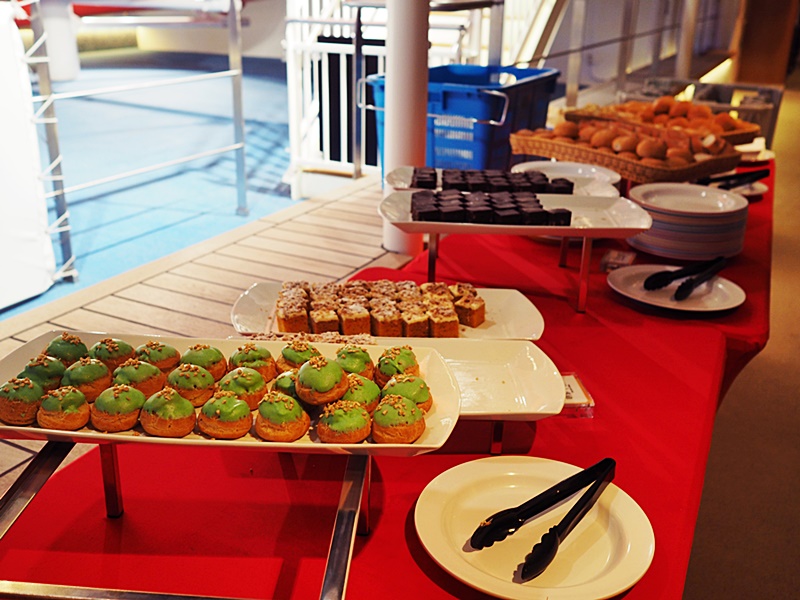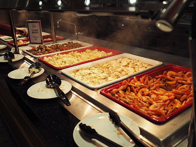 第一站先醫肚. 船上有十多間不同類型的餐廳, 而其中16樓的麗都自助餐廳和7樓的星夢餐廳都提供免費膳食. 一日三餐都不用擔心, 但就要留意早, 午, 晚餐的開放時間, 基本上這幾天我們都是吃免費餐, 也感到相當滿意.