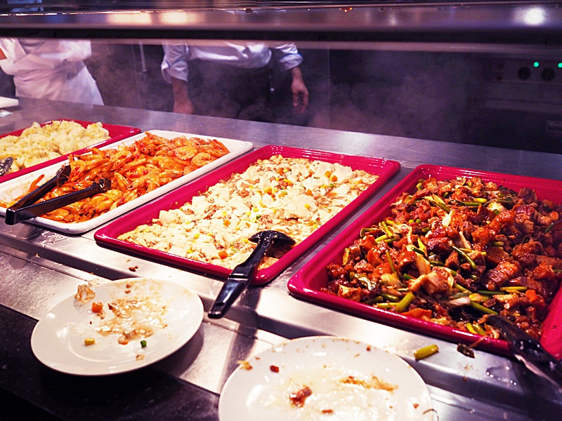 吃得最多的是16樓的自助餐, 座位十分多, 而且環海而坐, 開揚舒適. 但在用餐的繁忙時間, 人流也十分多, 最好早一點來到, 較容易找到窗邊的座位.