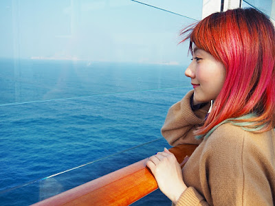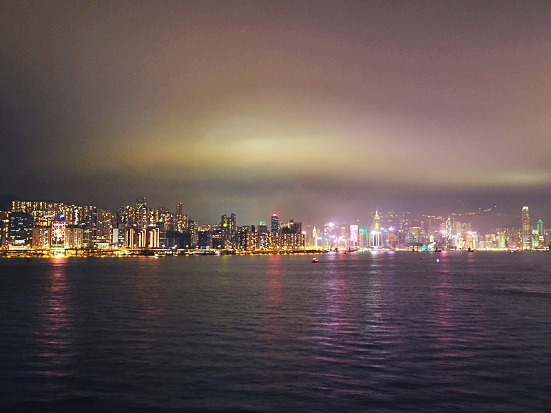 未開船前也能盡覽香港的夜景, 這天氣侯和暖, 海面平靜, 郵輪約9時左右啟航. 置身船上, 近乎完全沒有晃動的感覺, 如覆平地般平穩, 怕暈船浪的朋友也大可放心, 即使往後兩天出了公海, 還是十分穩定, 絕對不用服食暈浪丸.