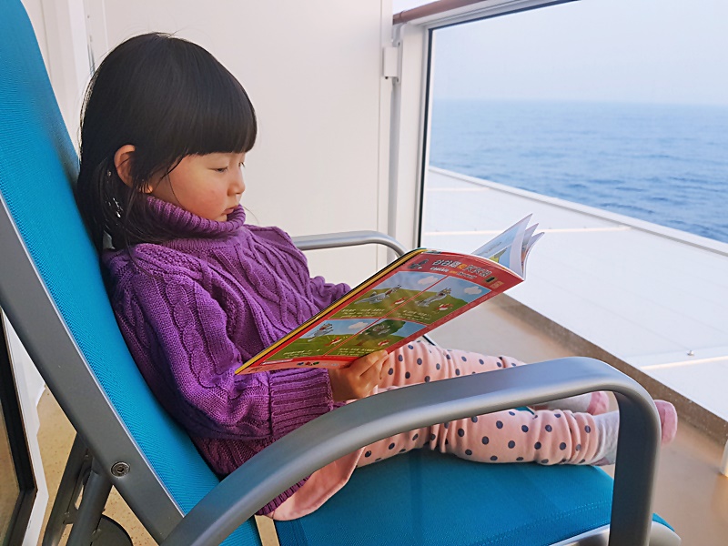 媽媽趁兩父女睡了, 敷個Mask, 再拿來放置在房內的Dream Daily看看船上設施和節目. 有小孩的爸媽都會懂, 要靜靜的做點事, 實在要待小朋友睡了才可以! 在這份Dream Daily上有了這幾天行程的時間表, 節目也相當豐富, 大人, 青少年, 小朋友的活動也有, 不過有些名額有限, 記緊要預早報名或預約.