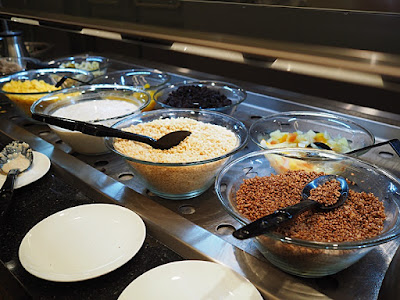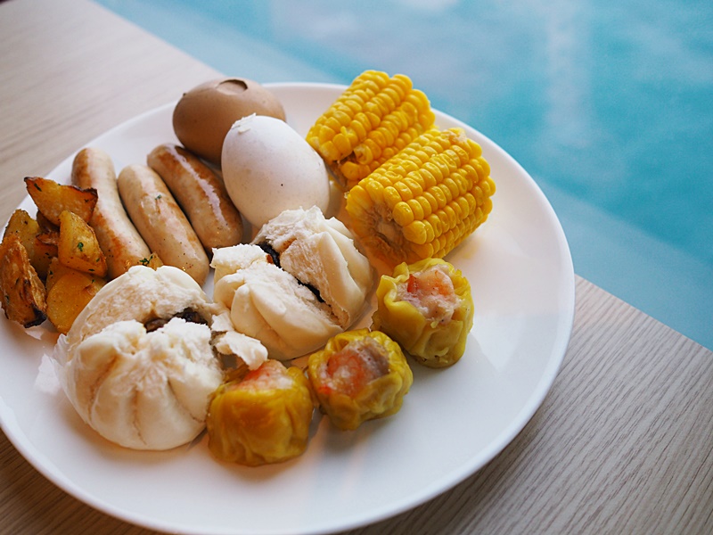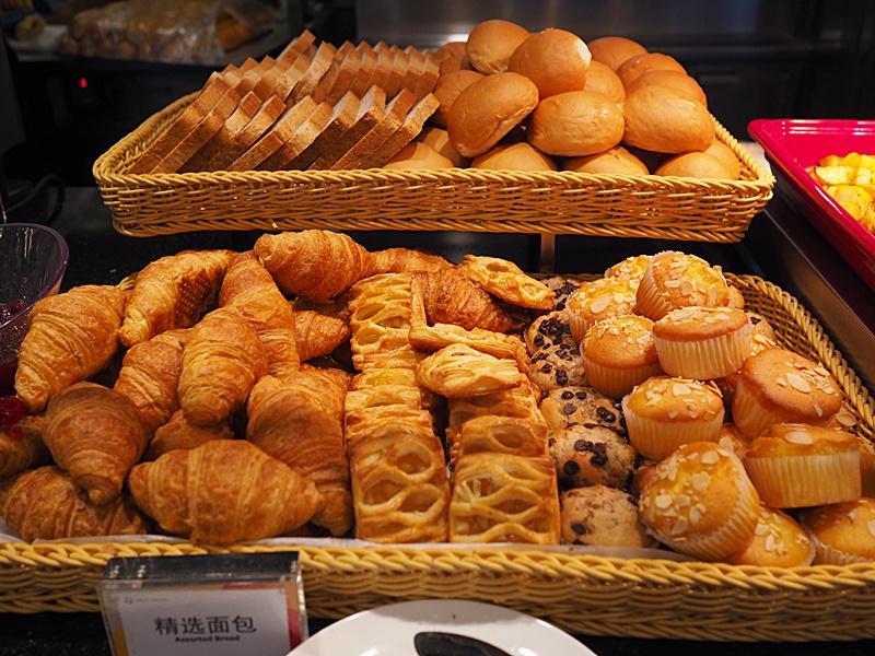 早餐的食物款式眾多, 有中式有西式, 飽點, 點心, 穀物類, 粥品, 茶餅, 水果皆有, 而且供應不絕, Refill也快, 小朋友也有食物岩食. 飲品也是自助形式, 咖啡, 奶茶, 果汁, 豆漿, 奶類等都有供應.