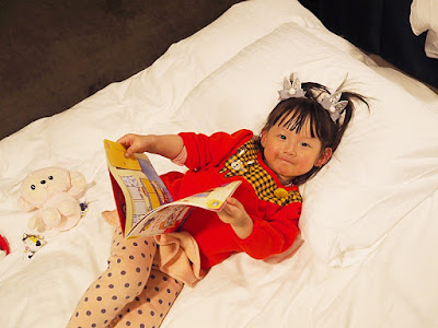 第一天沒有來得及細看行程和節目表, 晚飯後跟QB說說故事, 梳洗後讓她先上床睡覺.
