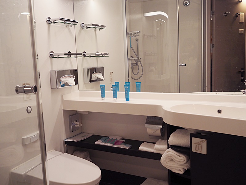 而浴室內也放備了一些個人潔衛用品, 如洗頭水, 護髮素, 沐浴露, 牙刷, 梳, 鬚刨也有.