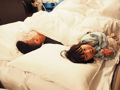 本來一心讓她自己睡, 但最後還是要爸爸出馬作陪訓專員, 小女孩還在床上碌來碌去一陣子才願意入睡呢!