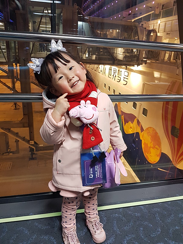 平時湊小朋友實在忙碌, 但要帶小朋友去旅行又要考慮很多因素, 一個短短的小旅行反而更易成行. 之前有考慮去澳門玩2天, 但價錢昂貴覺得不太值得而打消了, 最後我們選擇了去一個特別一點的旅程, 不用坐飛機, 不用坐長途車, 而是舒舒服服上郵輪去過一個很Relax的海上假期. 我們參加了星夢郵輪<世界夢號> 3日2夜航次, 在出發前QB已相當興奮了, 不停嚷着要坐船船, 當然她未必了解郵輪假期是怎樣的一回事, 但大概明白是很好玩的活動吧, 到出發一天, 更不停催促我出門呢XD..