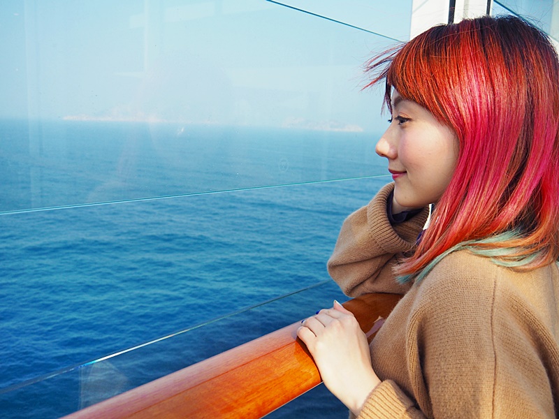 這裡的景觀一流, 在公海上天氣晴朗, 海水的顏色也特別的藍, 浪也不大, 望着藍藍的大海, 也很療癒.