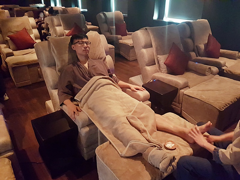 水療中心內清靜寛敞, 很Relax, 亦有很大的水療按摩池, 免費水果和飲品供應.