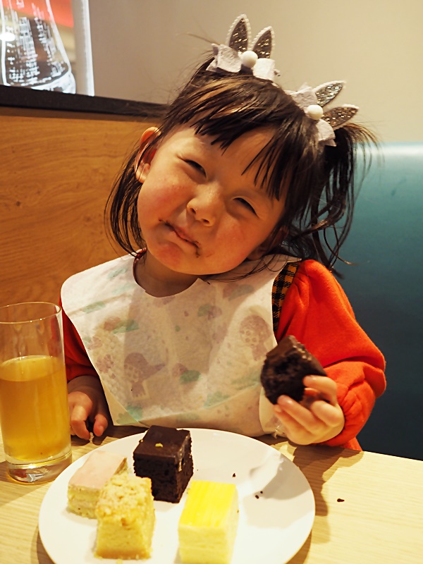 我們在房間稍作小休, QB已急不及待把帶來的朋友仔全數放到床上...還開心的跟她們"傾計"呢XDD..對於這張小床, 她相當滿意, 還是我們三催四請下才願意下床去晚飯. 十分喜歡Hea的小朋友, 請她來郵輪玩真的是很正確的決定呢~