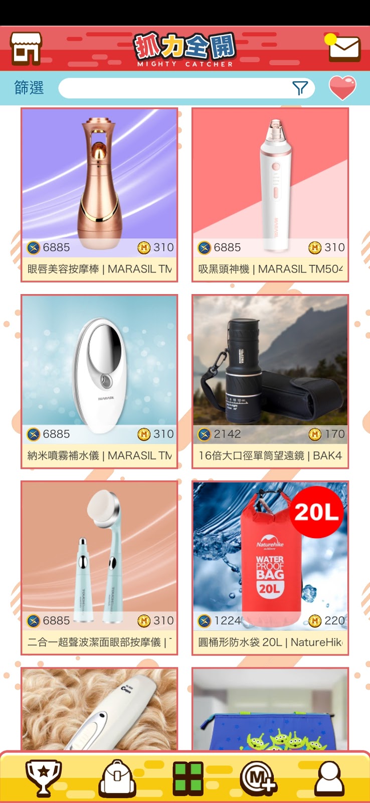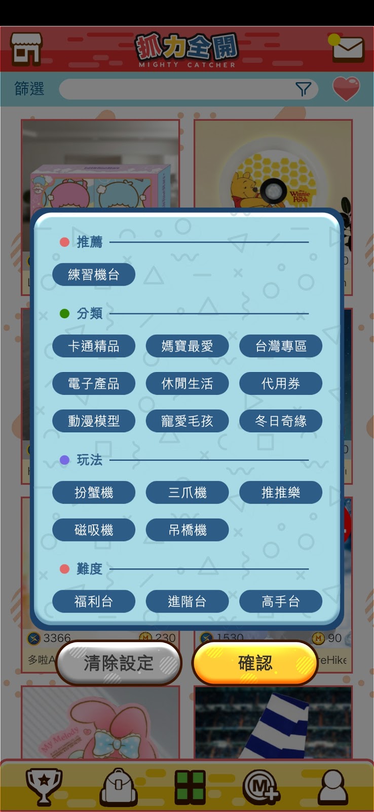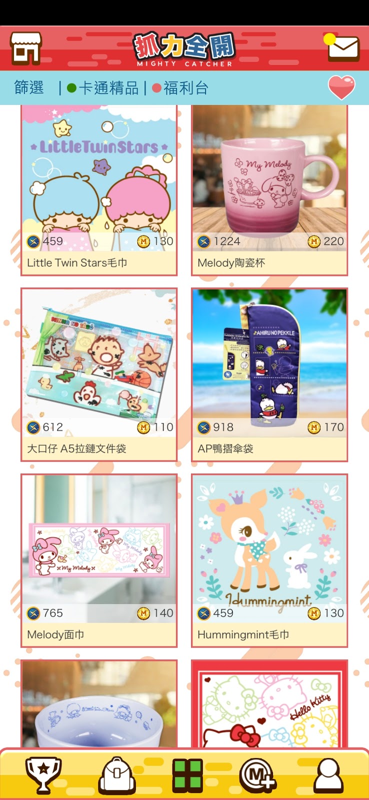 遊戲App內有近千款不同種類的公仔精品、日系Figure、電子潮物等比大家夾, 亦可按喜好篩選想要的禮品種類。