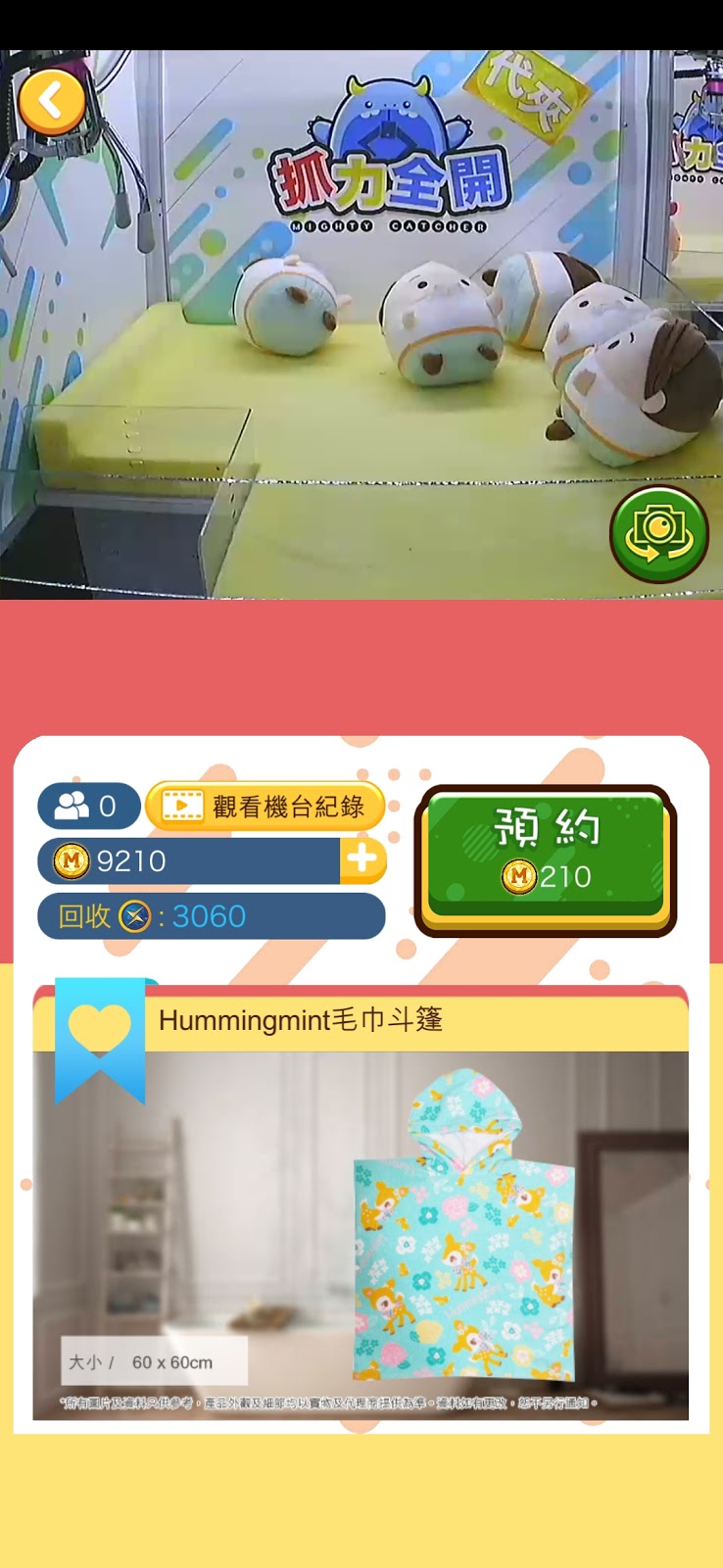 揀好奬品後, 先按「預約」, 不同的奬品所需的金幣也不同。