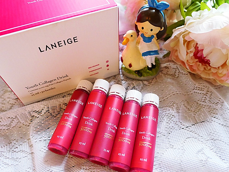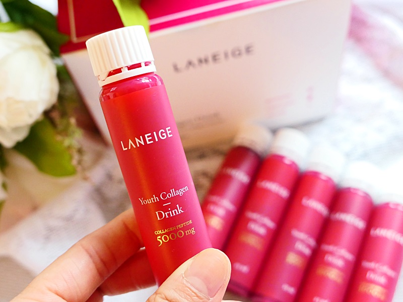 LANEIGE 膠原蛋白美肌飲的味道酸酸甜甜的, 味道似紅莓汁, 都幾好飲的. 每支含5000mg膠原蛋白, 足夠補充每日肌膚所需.