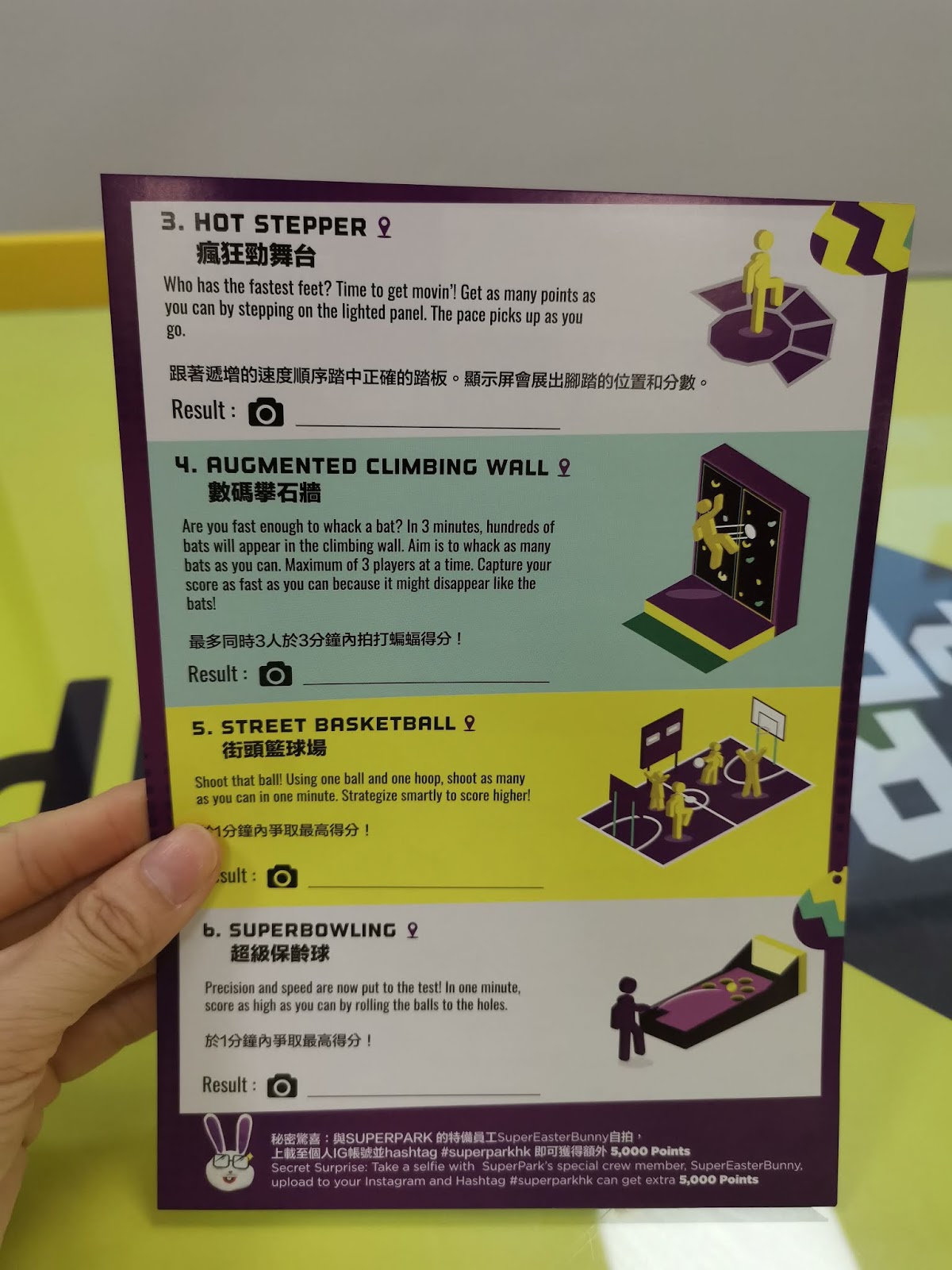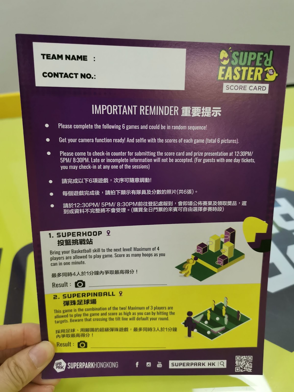 - 當日每個時段的最高得分者,可獲SuperPark 藍球或SuperPark足球乙個