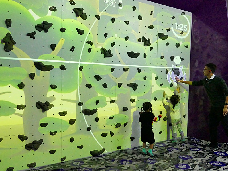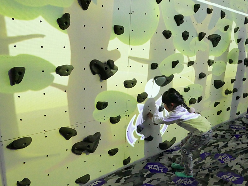 結合數碼元素, 令攀石運動增添趣味性. 遊戲有不同難度可選, 拍蝙蝠適合幼兒玩, QB看到蝙蝠都追着要拍, 玩到好投入.