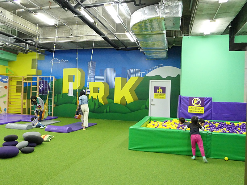 塲內有一個幼兒玩樂區, 有鞦韆, 波波池, 繩網, 積木等, 好岩年紀較細既小朋友玩架.