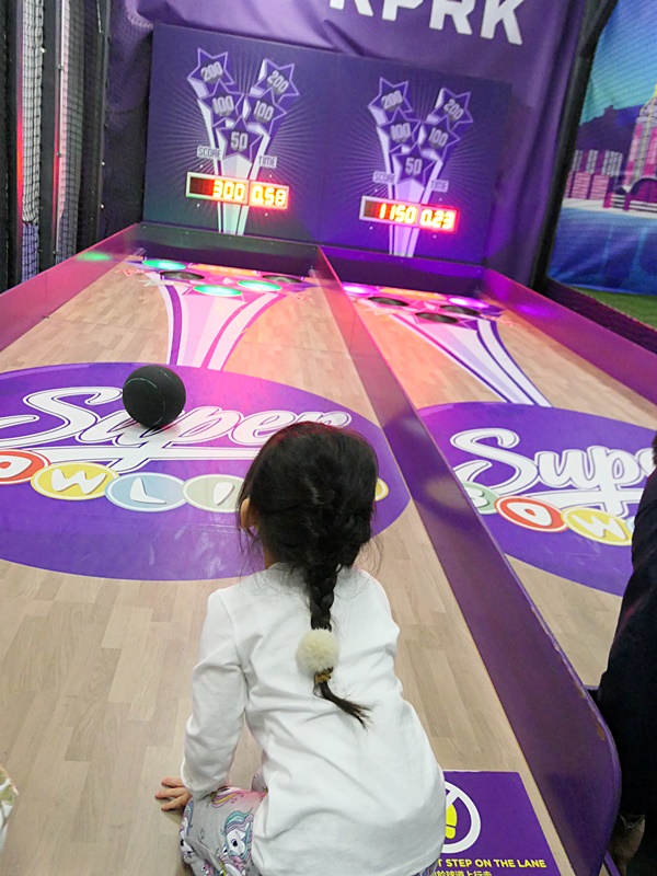 玩法: 於一分鐘內把保齡球投入不同分鐘的洞裡取分.