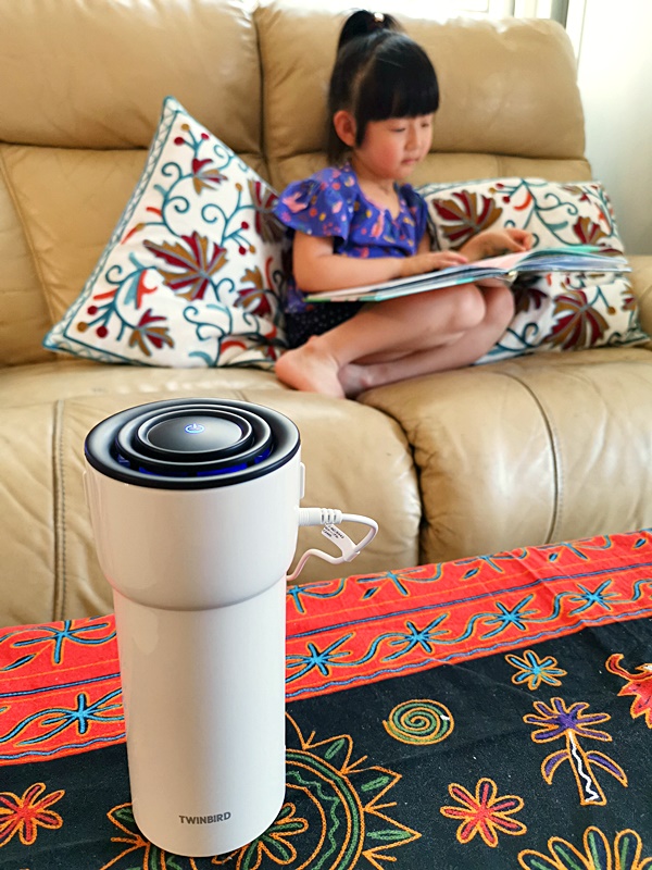 香港的空氣污染嚴重, 加上天氣潮濕炎熱, 鼻敏感, 氣管敏感十分常見. 而QB和爸爸的氣管也比較弱, 經常咳嗽不停, 即使看醫生吃藥, 或進食保健品也不十分見效. 咳嗽和鼻敏感的情況, 在密閉的空間最為嚴重, 平時坐巴士, 地鐵, 也很容易因致敏源而誘發咳嗽. 最近天氣炎熱, 晚上在房間中開冷氣, 同樣令敏感情況加劇, 每次一入房內就咳嗽不停. 所以一直也想物色一部空氣淨化機, 但香港地寸金呎土, 居住環境普遍唔大, 傳統既空氣清新機相對大型, 佔位之餘, 亦只能固定係一個地方使用, 欠缺靈活性.